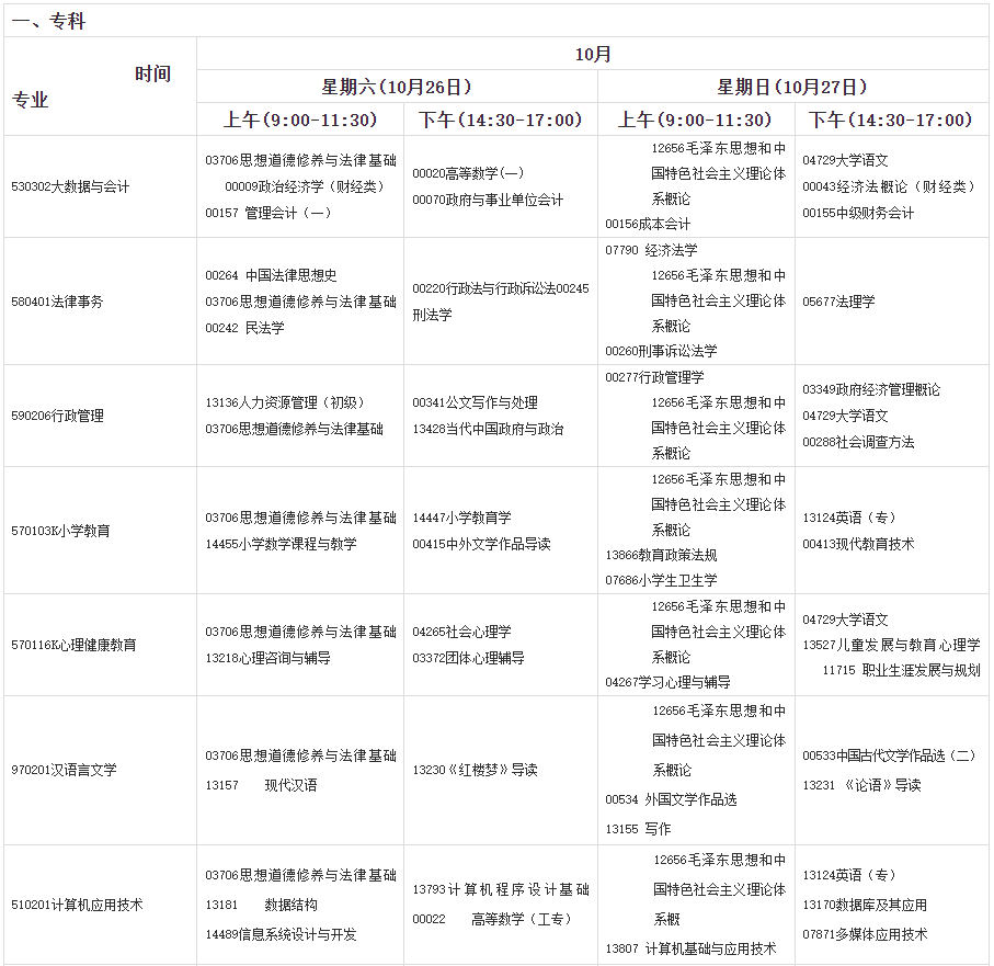 2024年下半年甘肃省高等教育自学考试开考专业及课程考试时间安排