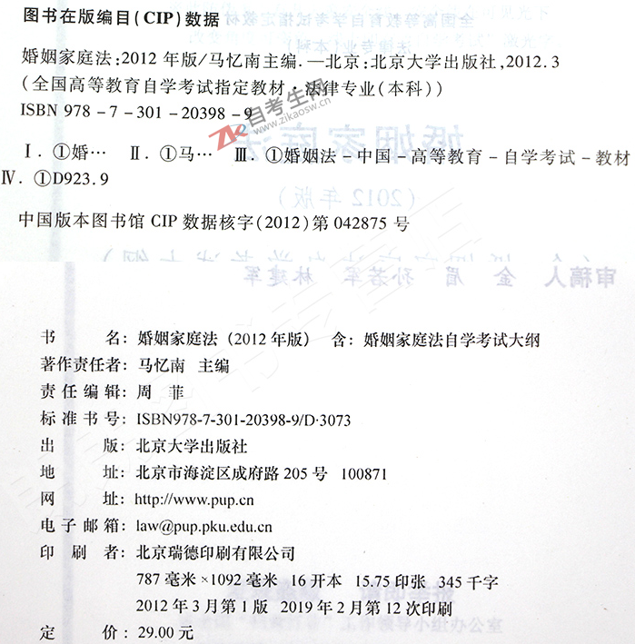 北京大学出版社,马忆南,2012折 扣 单笔订单电子资料满2件9.5折,大于2件9折