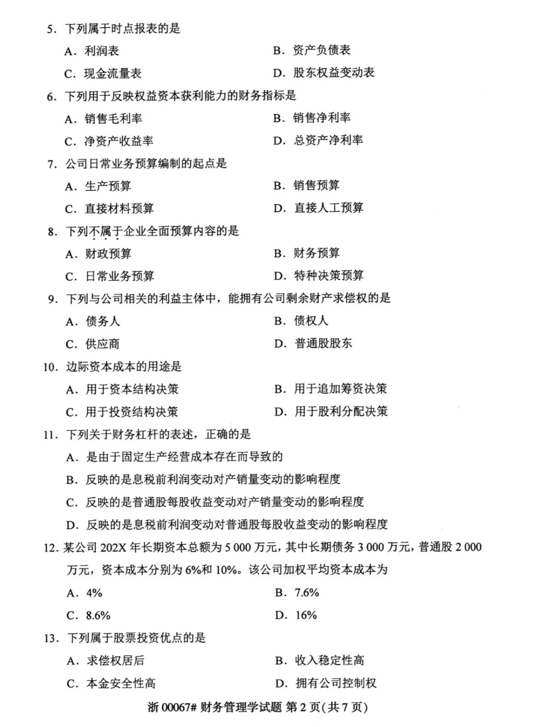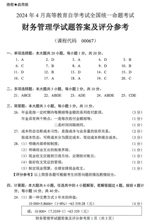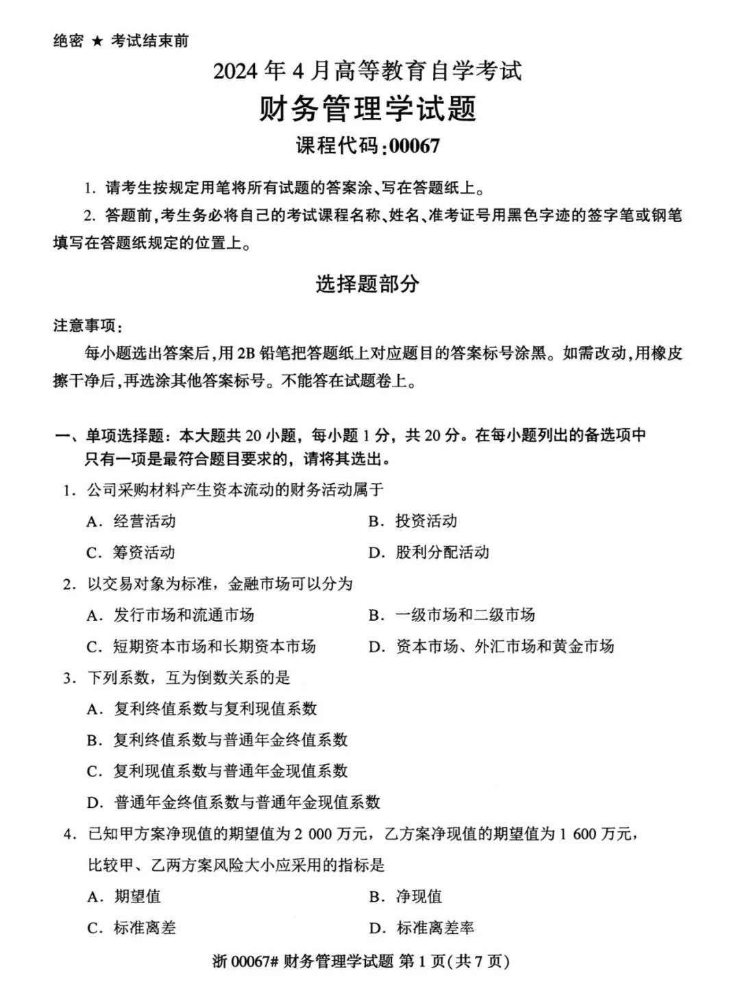 相关《2024年4月甘肃财务管学理自考真题》的文章