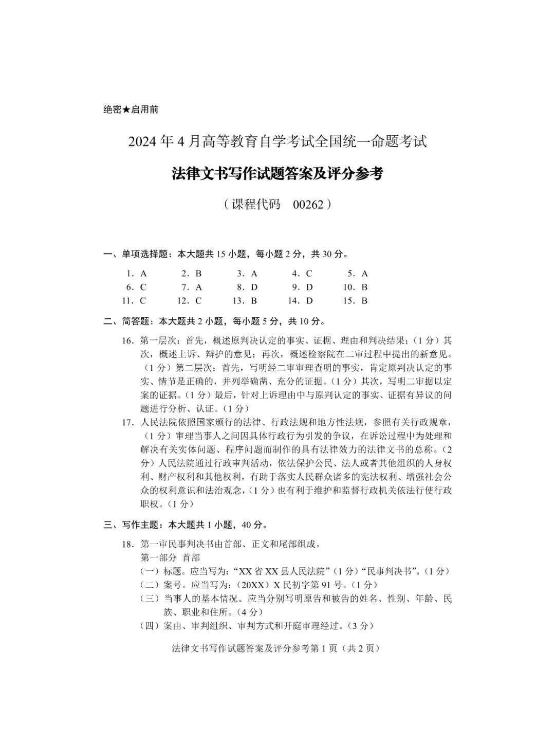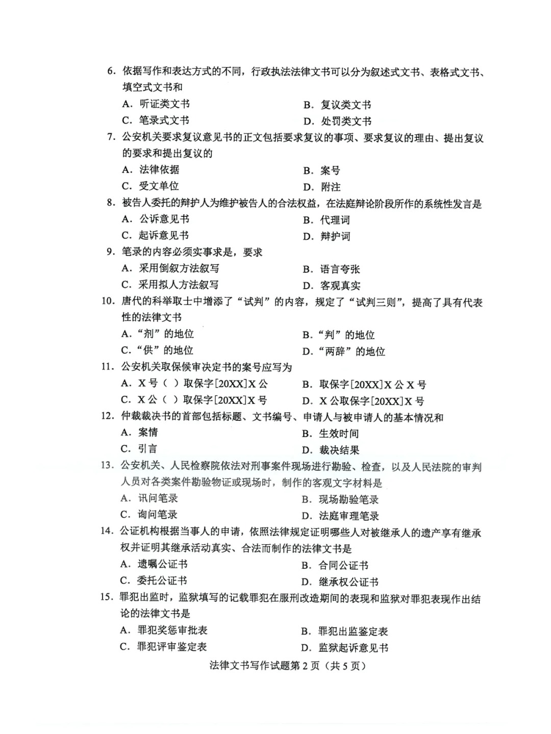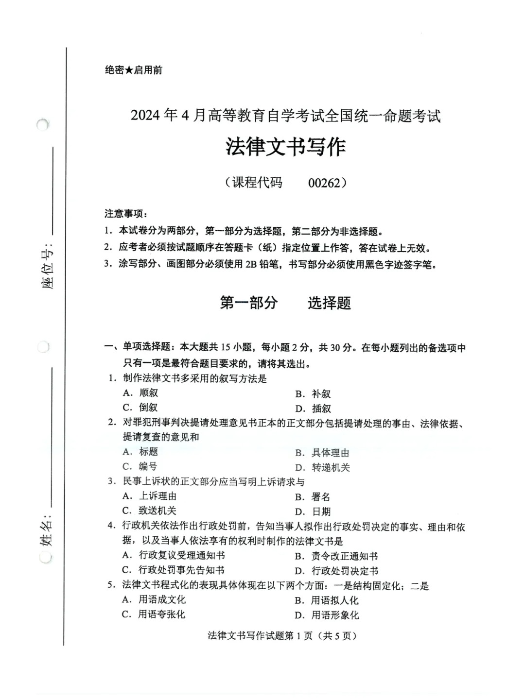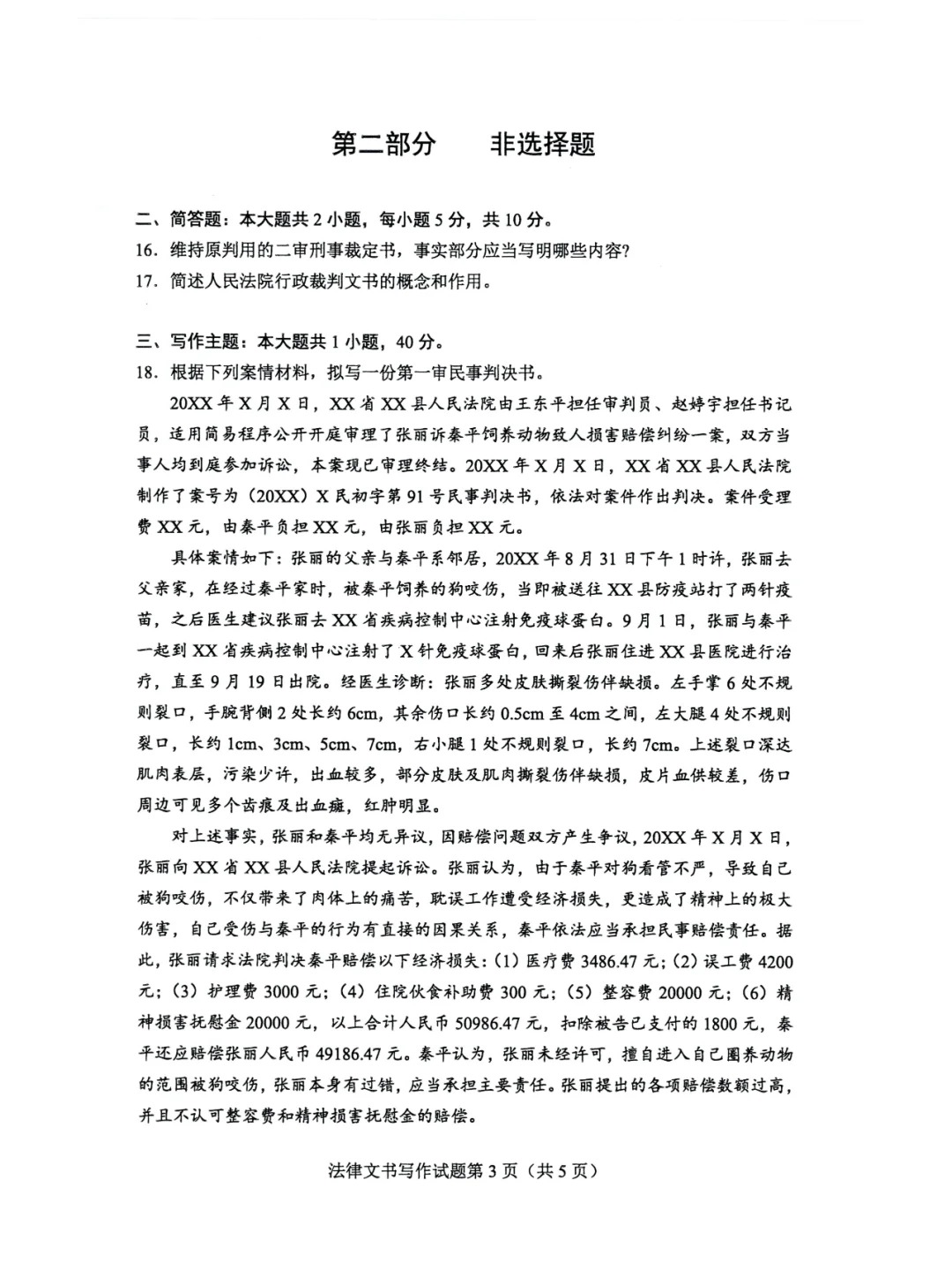 相关《2024年4月甘肃法律文书写作自考真题》的文章