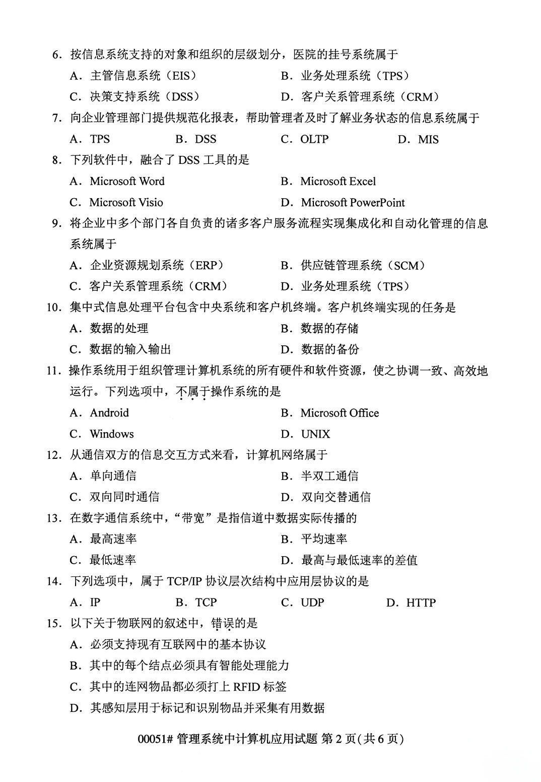 2023年4月甘肃自考《00051管理系统中计算机应用》真题分享!