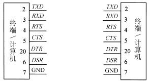 25.在题25图中画出两台PC机近距离异步串行通信时RS-232C接口的直接互连图(用一方的RTS来产生另一方的CTS,用一方的DTR来产生另一方的DSR,全双工方式).