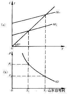 把每一价格总水平所对应的横轴上的产出水平描绘成一条曲线,即可以得到总需求曲线AD。