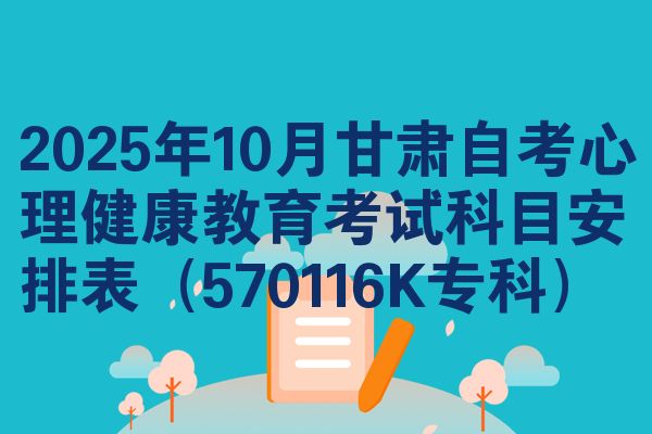 2025年10月甘肃自考心理健康教育考试科目安排表(570116K专科)