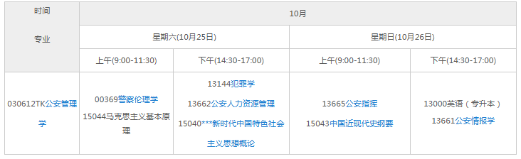 2025年10月甘肃自考公安管理学考试科目安排表(030612TK专升本)