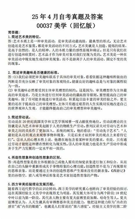 2025年4甘肃自考《美学》答案已出!快来对答案啦!