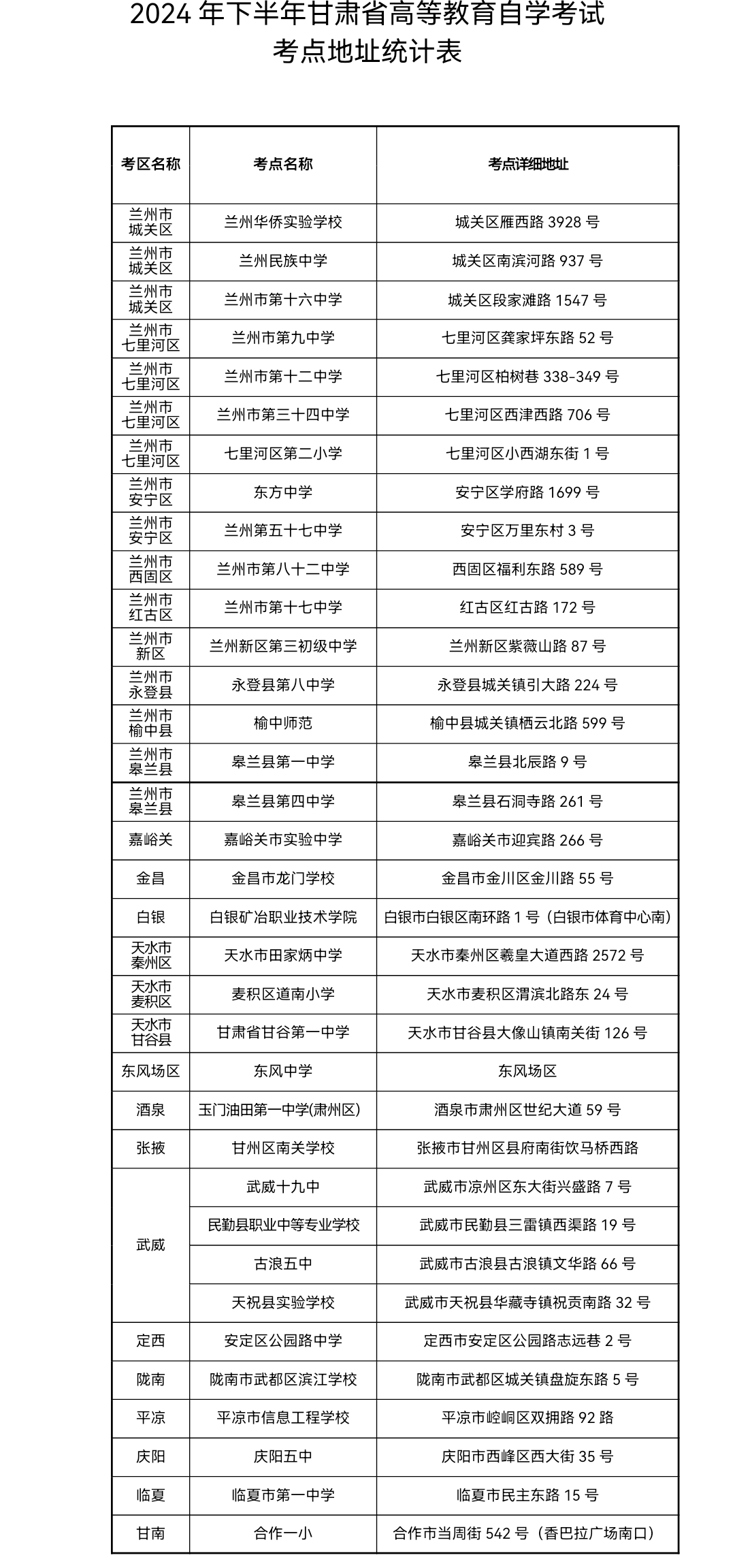 2024年下半年甘肃省高等教育自学考试温馨提示