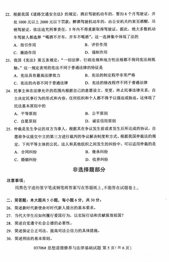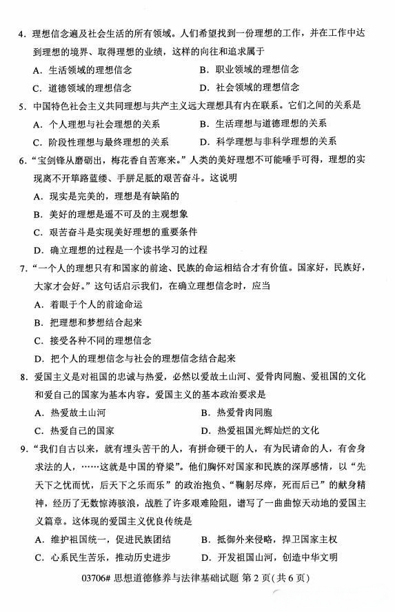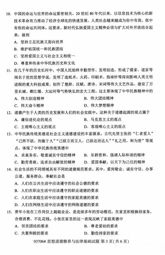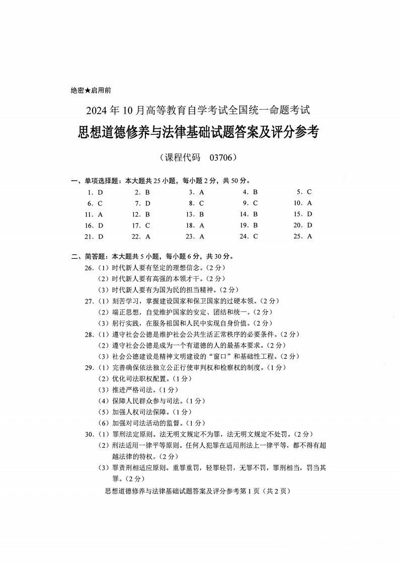 2024年10月甘肃自考《思想道德修养与法律基础》历年真题及答案解析!
