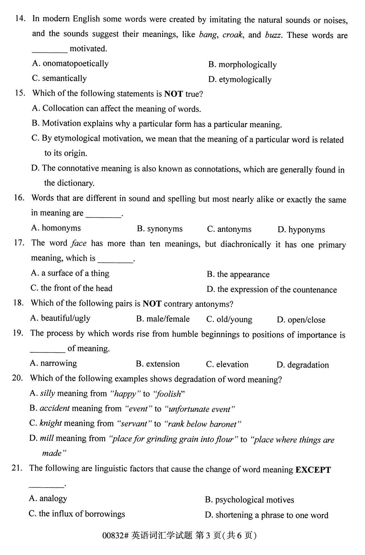 甘肃省2020年8月自学考试本科00832英语词汇学真题