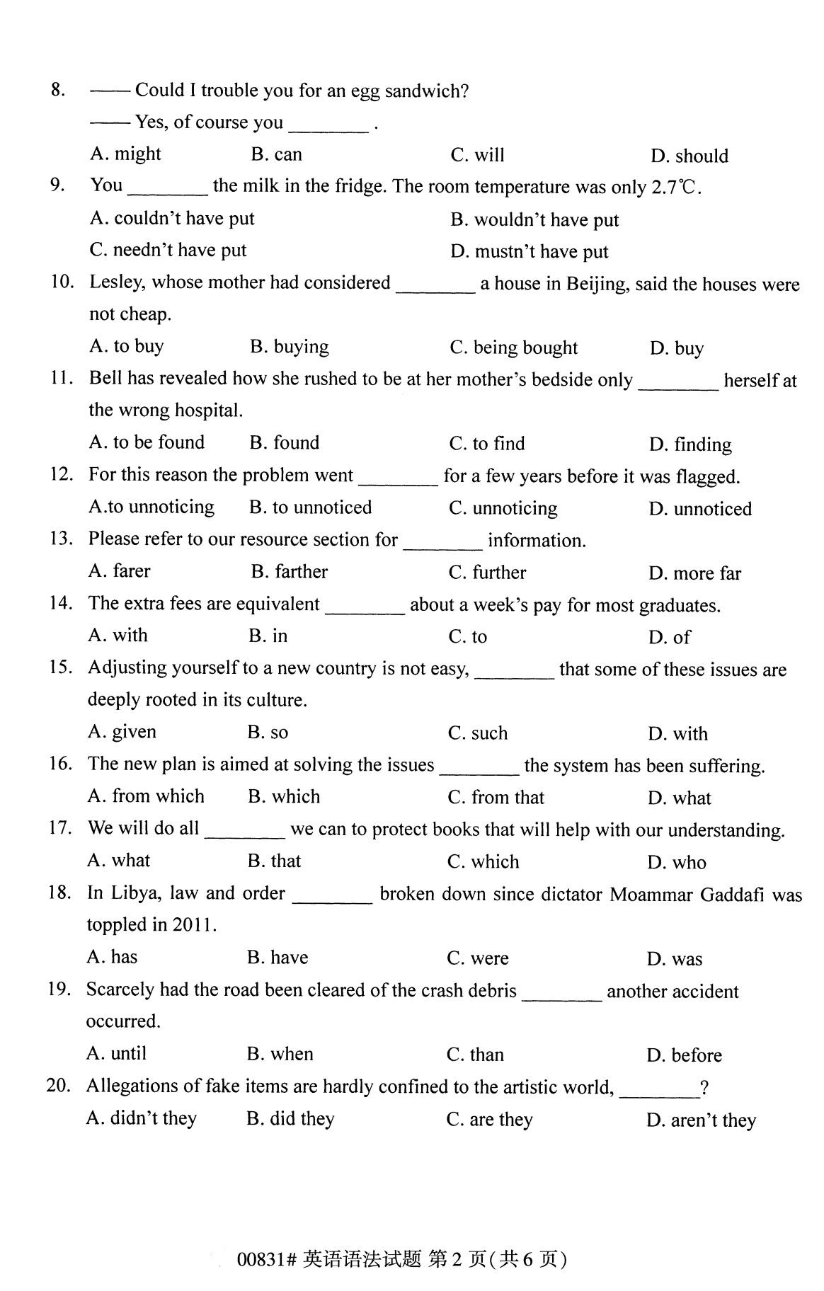 相关《甘肃省2020年8月自学考试本科英语语法真题》的文章