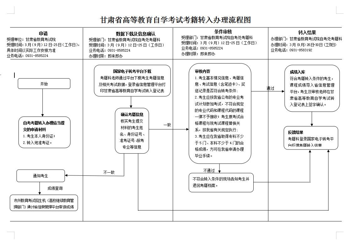 2021年甘肃省高等自学考试考籍转入办理流程图